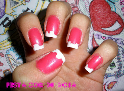 Bom eu sei que a base da unha tinha que ser mais vermelha.... mas se pararem pra pensar... doce de morango sempre é rosa!